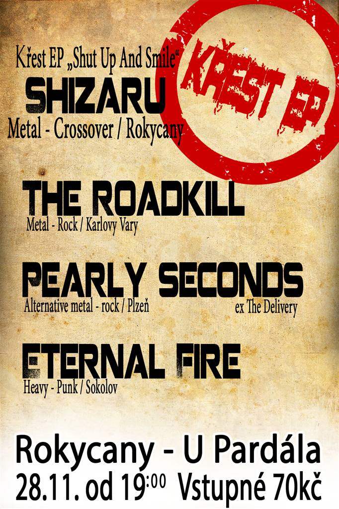 Křest debutového EP "Shut Up And Smile" rokycanské kapely Shizaru, který se uskuteční 28.11. od 19:00 v Hospůdce U Pardála v Rokycanech. Vstupné 70 Kč.