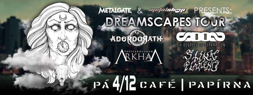 Papírna v zimě uvítá špičky tuzemské metalové scény v rámci DREAMSCAPES TOUR. Přijďte si po letech vyslechnout, co nového se děje v táboře ADOR DORATH a SIX DEGREES OF SEPARATION, poprvé v Plzni můžete zažít POSTCARDS FROM ARKHAM a o zážitky z temných zákoutí plzeňských kanalizací vás obohatí kultovní STÍNY PLAMENŮ.