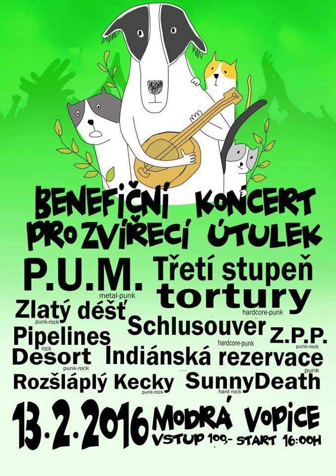 Přijďte si alespoň trochu vylepšit karmu účastí na téhle akci, jejíž celý výtěžek bude věnován Občanskému sdružení na ochranu zvířat TOULAVÉ TLAPKY. Toto sdružení bylo založeno v srpnu 2007 s cílem pomáhat opuštěným a týraným zvířatům, především kočkám a psům. Jsou neziskovou organizací a v azylu mají v současné době zhruba 170 psů a 80 koček, takže potřebují každou pomoc. Za vybrané peníze z koncertu nakoupíme věci, které Tlapky budou nejvíce potřebovat, pravděpodobně se bude jednat o přípravky proti parazitům pro psy a kočky, obojky, pelíšky a nějaké další vybavení. Všechny kapely, které na této akci vystoupí, zahrají bez nároku na honorář, a za to jim patří obrovský dík. Na místě bude také spousta vegetariánského a veganského jídla, jehož zakoupením také přispějete zvířatům. Pro více informací o Tlapkách se podívejte zde