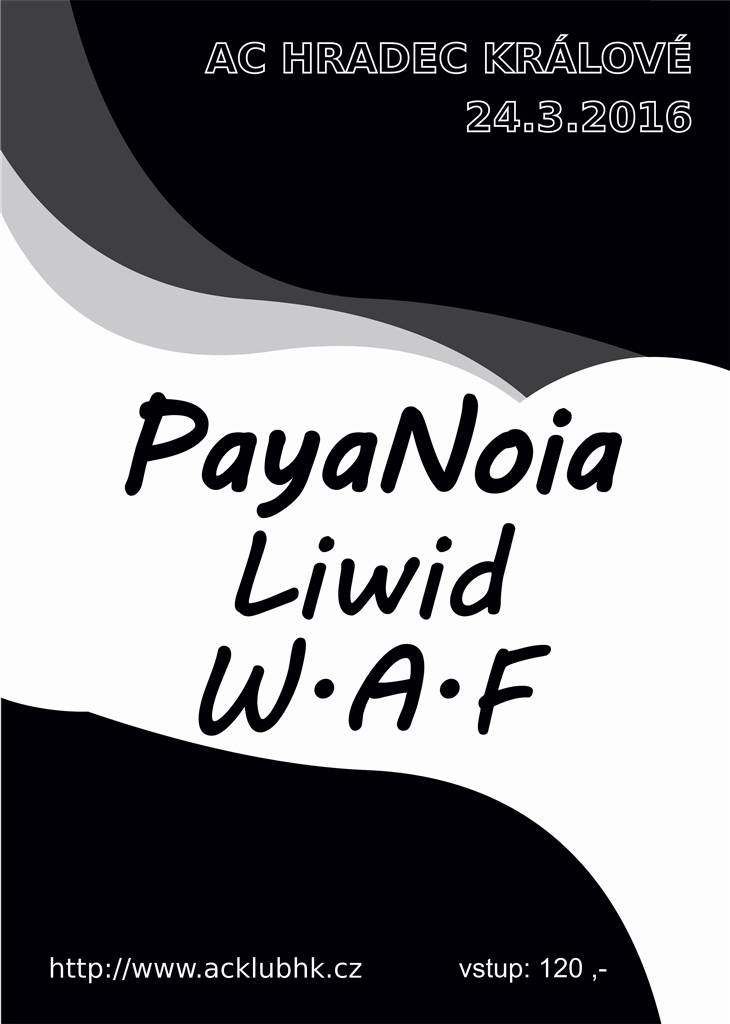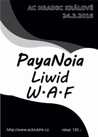 Kapela Páji Táboříkové PayaNoia se rozhodla spojit síly s Karlovarskou kapelou Liwid a vystoupit na společném pódiu v Hradci Králové. Support jim bude dělat pop-rocková parta kluků z kapely W.A.F.
