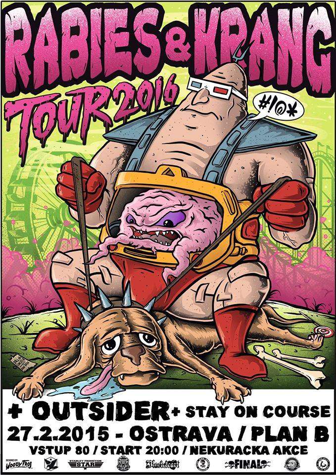 RABIES a KRANG zahrají v rámci společného tour v Ostravě.A kde jinde než v nejlepším klubu PLAN B? Jako doprovod si přibrali teď už vlastně ve Valmezu nejdýl hrající punkrock OUTSIDER a novou krev z Kopřivnice STAY ON COURSE.
