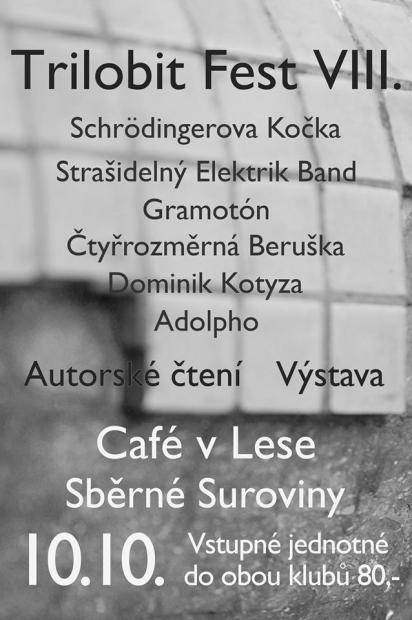 Trilobit dospěl ke svému osmému pokračování! Neseď doma a přijď zapařit na dobrou hudbu, prohlídnout si výstavu a poslechnout si výplody mladé generace literátů! Navíc budeš mít zase na výběr mezi dvěmi scénami, takže si určitě najdeš to svoje.
