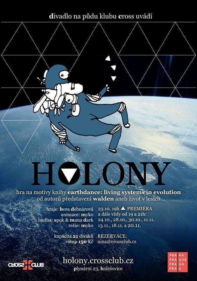 Experiment s využitím animace, trifonního zvuku, neverbálního divadla a loutek. Mystérium stvoření pro 3x7 diváků. Inspirováno knihou evoluční bioložky Elisabet Sahtouris "Earthdance: Living systems in evolution", která rozvíjí teorii Země/superorganismu. Od tvůrců představení Walden aneb Život v lesích.
