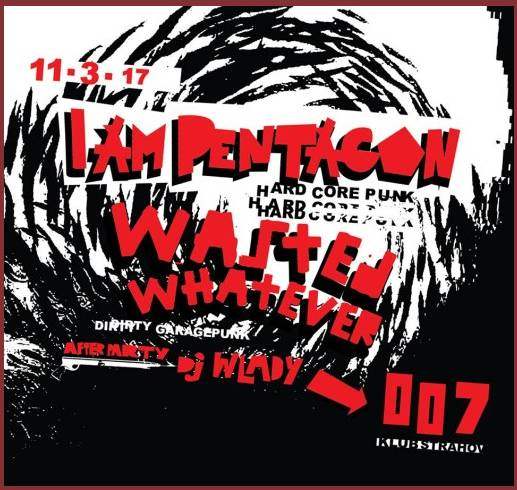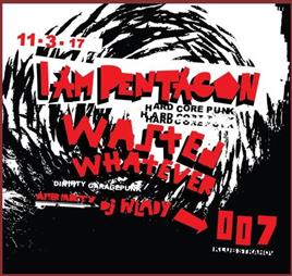 Živý koncert pražské hard core punkové úderky I AM PENTAGON a dirty garage punkových WASTED WHATEVER. Pekelná to kombinace, DIY kapely jako z praku, nářez od začátku do konce.