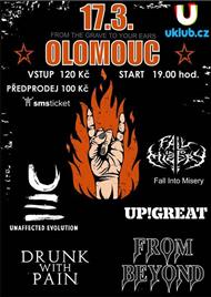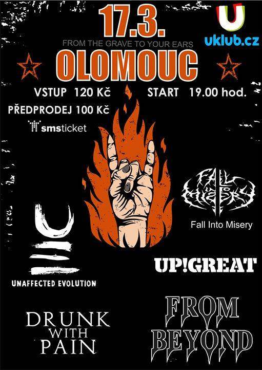 Našlapaná akce plná kvalitní hudby! Doslova ze záhrobí až do tvých uší! SOLUTION OF PANIC, FROM BEYOND, UP!GREAT, DRUNK WITH PAIN a FALL IN TO MISERY.