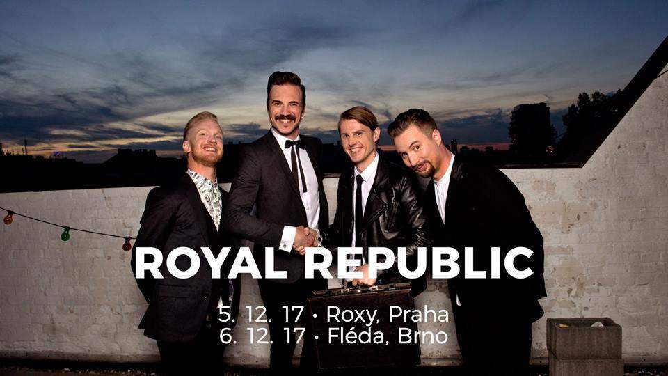 ROYAL REPUBLIC oslaví deset let své existence evropským turné. V České republice vystoupí dvakrát, 5. prosince 2017 v pražské Roxy a 6. prosince 2017 na brněnské Flédě. Vstupenky v relaci 490–590 Kč budou k dostání od pátku 30. června 2017 přes fource.cz, GoOut.cz a Ticketpro.