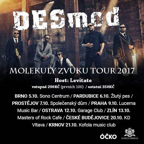 Slovenská kapela Desmod vyjíždí na ucelené, podzimní, české turné MOLEKULY ZVUKU TOUR 2017. Další zastávka se koná v Krnově ! Kluci slibují vzpomínání na staré hity a zároveň plánují představit fresh novinky!