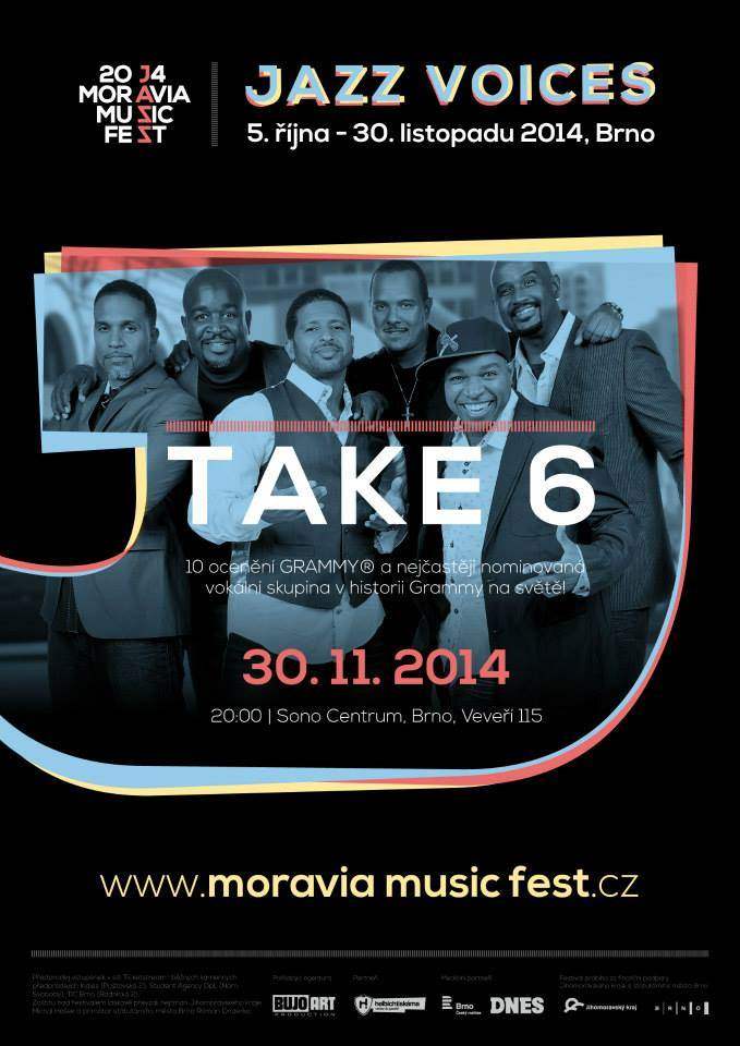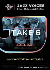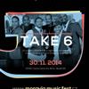 Nezaměnitelní a nezkrotní desetinásobní vítězové GRAMMY a Dove Award jsou perfektní reprezentací toho, co Duke Ellington nazvýval "Beyond Category". TAKE 6 získali zvláštní ocenění jako "nejčastěji nominovaná vokální skupina v historii GRAMMY" a jejich zvuk je skutečně unikátní: šest andělských a vybroušených hlasů ucelených v křišťálově čisté harmonii a synkopických rytmech, zdobených aranžích v kombinaci s funky a groove, které bublají až do opojného varu gospelu, jazzu, R&B a příchutě popu. Příběh TAKE 6 začal už v roce 1980 na Oakwood College v Huntsville v Alabamě. V roce 1987 skupina podepsala kontrakt s Warner Brothers a změnili název na TAKE 6. Stejnojmenné debutové album vydané v následujícím roce získalo 2 ocenění GRAMMY a usadilo se v top 10 na žebříčku Billboard's Contemporary Jazz and Contemporary Christian charts. TAKE 6 nasbírali celkem 10 GRAMMY Awards, 10 Dove Awards, a Soul Train Award a 2 nominace na NAACP Image Award. Vyhráli ceny a nahrávali nebo vystupovali s tak významnými osobnostmi jako Quincy Jones, Stevie Wonder, Ray Charles, Ella Fitzgerald a Whitney Houston. „Multiplatinový“ sextet se vrátil ke svým kořenům se svým očekávaným albem ONE v březnu 2012.