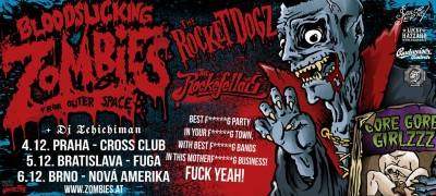 BloodSuckin´ Zombies from Outer Space (BSZFOS)se vracejí na místo činu do Prahy a poprvé se představí v Brně a Bratislavě v rámci jejich třídenního CZ/SK minitour. Kapela z Vídně se dala dohromady v roce 2002 a následně se etablovala jako nejvýraznější Punk/Horrorbilly uskupení z hlavního města Dolních Rakous. Omezit tuhle grupu a jejich fans ale pouze na napomádované pásky nebo silnou vrstvou mejkapu pokryté pin-ups by bylo značně zjednodušující. Jak pronesl jeden člen nejmenované dobře zavedené české punk rockové formace, cituji “tak tohle vole sakra šlape!“ a měl samozřejmě pravdu. Když to tahle kapela rozbalí je to zdrcující jak útok komančů na karavanu dostavníků. Rychlé jako dolfiho zábor stavební parcely pro budoucí orlí hnízdo, zběsilé stejně jak parlamentní debaty ve tři čtvrtě na tři.