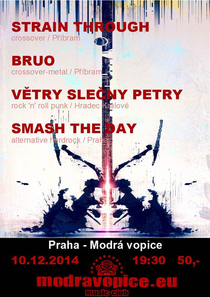 STRAIN-THROUGH, BRUO, VĚTRY SLEČNY PETRY, SMASH THE DAY – V MODRÝ VOPICI!!!