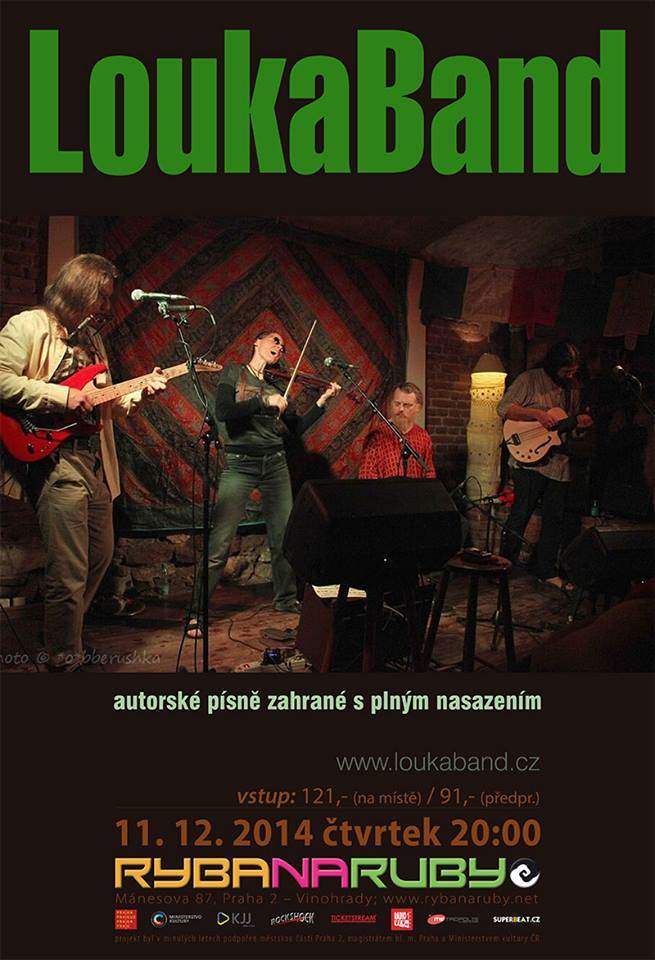 LoukaBand tvoří: Helen Rock (housle, zpěv), Bo (kytara, harmonika, zpěv), Lubor (basa, zpěv), Tony Bongomanhead (perkuse).