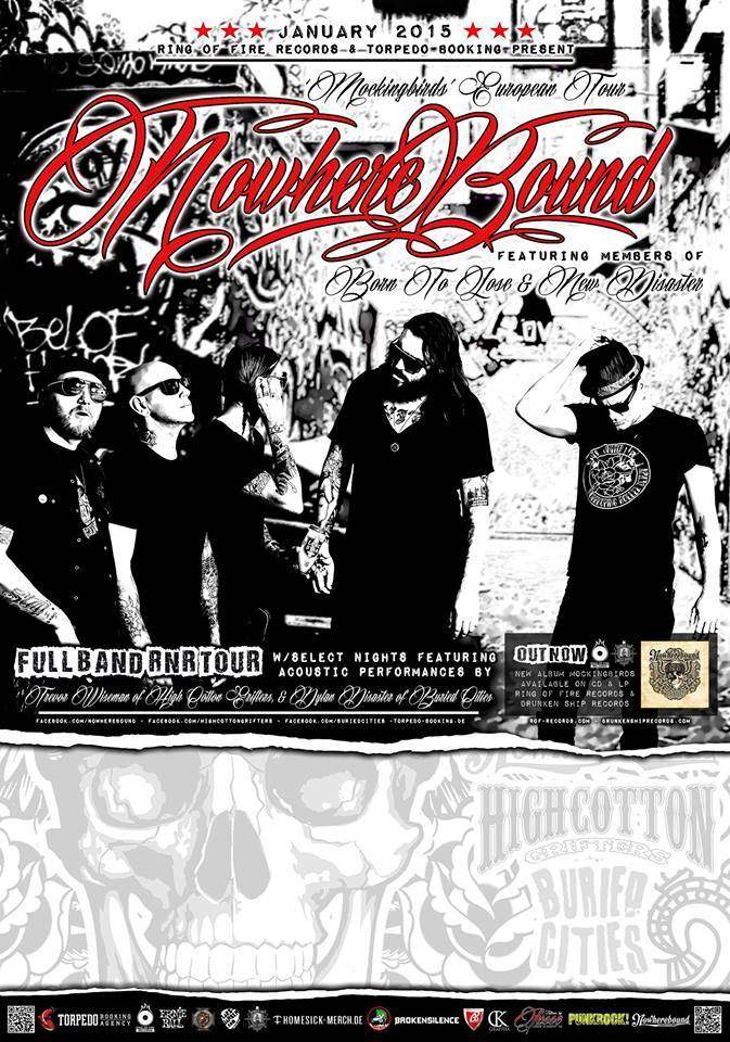 Na podzim roku 2010 se urodil v hlavě lídra kapely Born to Lose Chrise Klincka plán na založení boční kapely. Dychtil po projektu, kam by si chodil odpočinout od dvou elektrikou poháněných kytar, bublající basy a tepajících bicích. Vedlejšáku, kdy si se španělkou vyleze na zápraží svýho texaskýho domu a bude si jen tak drnkat o nekonečnejch dálkách, toulkách a příbězích punk rockového desperáta. Nahrál si sám první demo, a jelikož ostatní spoluhráči z Born to Lose se mezitím zaneprázdnili založením a hraním v Threes Away, našel si parťáka v Trevoru Wisemanovi, který mu dodal potřebný beatnický a zvukový rozměr. Boys spolu stihli natočit desku a přetočit pár původních dem k vydání evropského releasu a vyjeli na tour po starém kontinentu. A po menším tichu po pěšině se nakonec do světa rozlétla fantastická zpráva a tom, že Nowherebound přijedou do Evropy elektricky a v pěti. Španělky nechaj doma a budou potřebovat kabely, prodlužky a zásuvky! Sestavu Chris/Trevor doplni Chris Hausen, původní a jedinečný basák Born to Lose!! Dále Natchet Taylor z né úplně neznámých New Disaster a Rob Williamson jako bubeník.