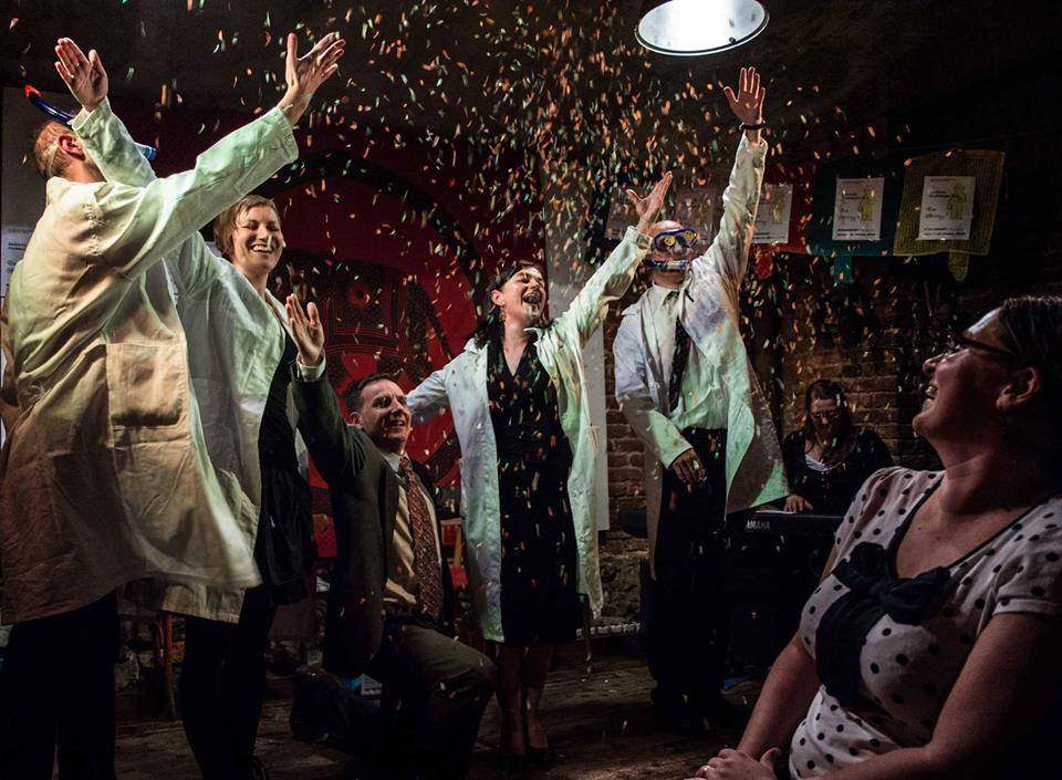 MARTIN: Jakub před časem zjistil, že ho vysávaj lidi. Tak začal vysávat zvířata… SONIA: …jenomže zvířata vysávaj kameny! VLADIMÍR: Kdo by myslel na ošklivý svět za dveřmi, když jsme tady spolu, mezi kamarády. ZUZANA S HANKOU: Ša-la-la-la-la! *** Skrz naskrz pozitivní kabaret, ve kterém se dozvíte, že jste v pohodě a sluníčko svítí jako pominuté *** Sepsali Sonia Koutová, Vladimír Mikulka a Martin J. Švejda; hrají a zpívají výše jmenovaní a také Jakub Škorpil, Hana Tillmanová a Zuzana Vilímová. Režie Vladimír Mikulka a kol.
