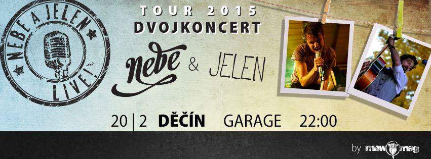 Společné turné dvou mladých a velmi talentovaných českých kapel. Skvělá příležitost zažít live vystoupení kapel Nebe a Jelen, které spojuje muzika plná energie a emocí, silné melodie, české texty "o něčem," skvělé interpretace a zkušenosti z více než 70 různých hudebních festivalů! Mezi jedenáctkou navštívených měst po celé ČR nesmí chybět ani Děčín! Přijďte si zazpívat hity jako Vteřina, Než se rozední, Legosvět či Magdaléna, Co bylo dál?, Jelen a další singly, které už znáte z rádiového éteru!