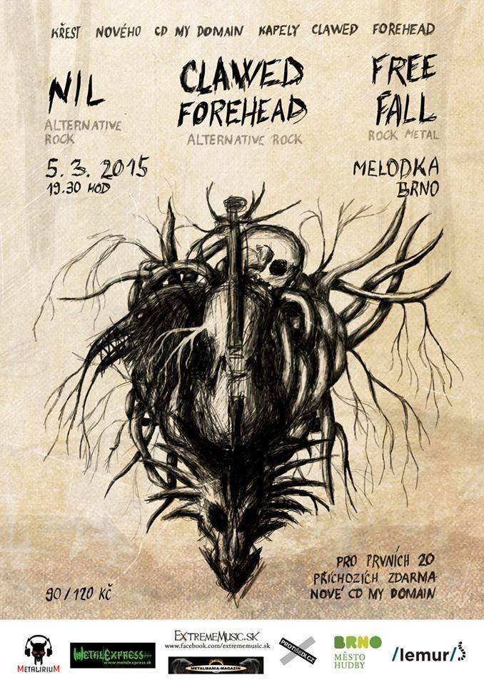 Ve čtvrtek 5. 3. na Melodce pokřtí kapela Clawed Forehead svoje dlouho očekávané CD "My Domain". Čeká vás přehršel kvalitní hudby, rumových skřítků a absintových víl. Jako hosté se na pódiu objeví NIL se svojí ďábelskou zpěvačkou a kapela Free Fall.