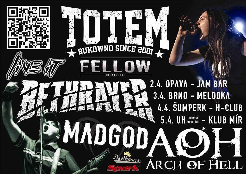 Rozhodně si nenechte ujít turné polských TOTEM, metalové smrště říznuté klasickým hardcorem s dredatou frontmankou Werou, šumperské thrash-metalcore mlátičce MADGOD a nové, energické hardcore-punk-metalové smečce LIVE-IT a šikovných metalcore mladíků REMEDY REMAINS.