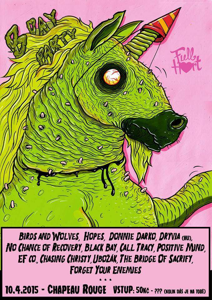 již počtvrté dělám ani ne tak narozeninovou party, jako večírek pro co nejvíce lidí v Chapeau Rouge Prague. Loni jsme to dost zbořili, bylo přes 400 lidí, sjela se celá republika, navazovala nová přátelství, Theplákovi se ztratila část bicích a backstage potvrdila svá prokletí. Takže letos zas.