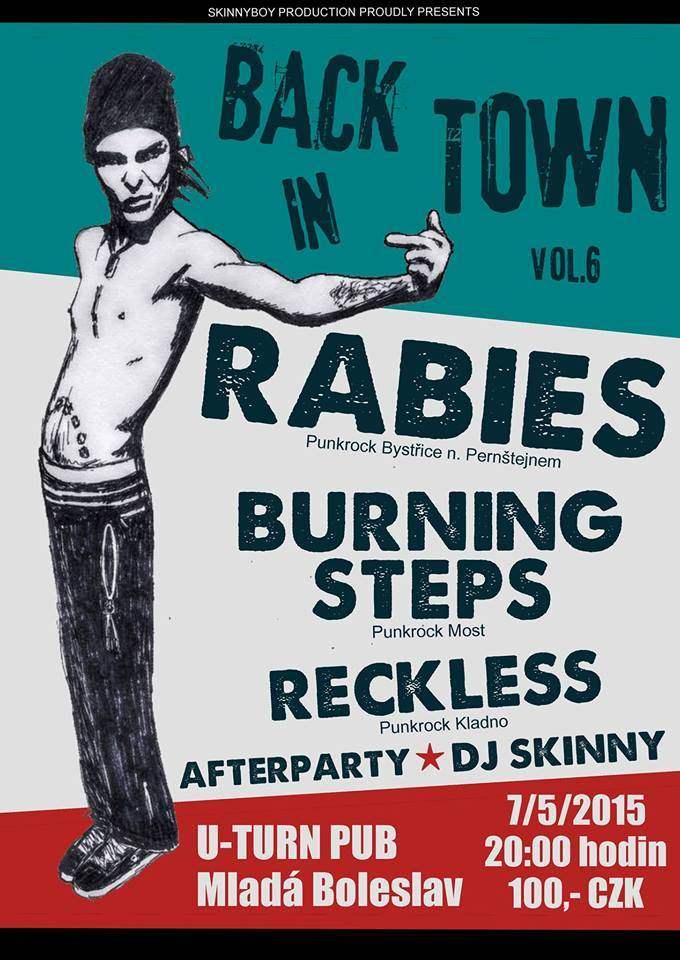 Rabies - Rabiáti se v rámci Back In Town večírků ukázali v Účku hned při jeho první epizodě a kdo jejich vystoupení viděl, ví, jakej nářez můžeme očekávat. Kapela se dá charakterizovat jako California Venice Vysočina beach band, hrající muzejní melodický punkrock. Banda hudebně nevyřáděnejch hotentotů z rodný Vysočiny poslouchající a inspirující se kapelama z 90. let z Californie, jenž na nich zanechaly určitý stopy, který se muzikou snaží doposud vyléčit. Tahle banda má za sebou překvapivě málo let (vešly by se ti na prsty jedný ruky) společnýho hraní na to, jakou stopu za sebou zanechala. Krom dema Just Jump z roku 2011 vydali Rabies o rok později regulérní album I Have Got Rabies!, který sklidilo zasloužený slova uznání napříč scénou. Od říjnovýho koncertu v Účku přibyla klukům na kontě další, dlouho očekávaná deska s názvem Nevergreen & Always Rad a potěšující je, že se jí dostalo i vynilový podoby! Při svejch toulkách po akcích všeho druhu se Rabies vystřídali na stagi např. s La Plebe, Argies nebo Street Poison.