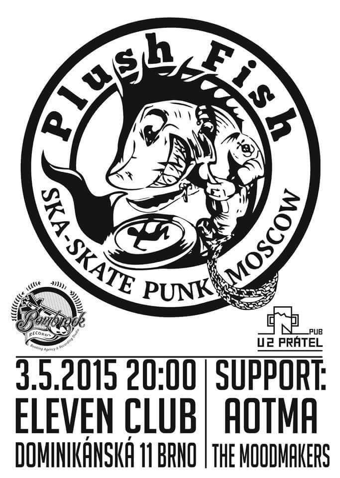 Ska punk / Skate punk / Pop punk / Porno punk / Sbíječka / Staveniště / Jízda....cokoliv, jakákoliv škatulka by sedla na tuto koncertní pumu. Ať už se rozhodnete pro jakoukoliv z těchto škatulek jedno je jisté - RUSSIANS ARE BACK IN TOWN. Naposledy hráli v Brně cca 4 roky zpět v tehdy ještě otevřeném klubu Muzejka. Energická bicí složka, smrtící dechy a frontman Sasha, který se opravdu nestydí. Stačí kouknout na jejich asi nejprofláknutější video mapující moskevskou punkrockovou scénu a život kapely v Moskvě obecně. Plush fish je hlavně sranda. Jsou to brutální tourmani, Evropu projeli snad 5x dokola. Zpěvák si třeba vyjede z Moskvy na víkend na Mighty Sounds pozdravit známé a jede zas domů.