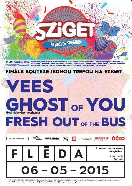 Jde se do finále soutěže o účinkování na festivalu Sziget 2015. Na Flédě rozhodnete mezi kapelami Vees (CZ) Ghost of You (CZ) a Fresh Out Of The Bus (SK)