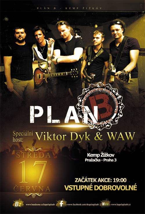 Přátelé naši milí, kapela PLÁN B letos oslaví 2. výročí a moc rádi ho oslavíme s vámi a různými hosty. Mejdan zahajujeme v Kempu Žižkov, na který vás co nejsrdečněji zveme. Je nám velkou ctí, že našim prvním hostem bude VIKTOR DYK se svojí kapelou WAW .