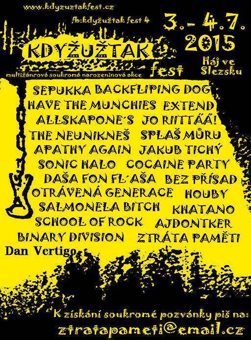 Další ročník multižánrové narozeninové akce je zde a bude se konat 3.-4.7 2015, postupně budou přidávány další informace. Jste zváni, hlavně ti, co již třikrát nemohli dorazit :-). Akce bude soukromá, tudíž ohledně dostupnosti VIP pozvánek a dalšího infa (ohledně pozvánek) piště do zpráv,rádi odpovíme. Pořadatelé KTUF.