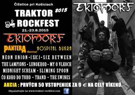 Rockeri, metalisti, pankáči aj všetci ostatní, zbystrite pozornosť!!! Práve nastal ten správny čas predstaviť vám to, čo sme si pre Vás tento rok pripravili. Ako sme už naznačili, Traktor RockFest poprvý krát vo svojej histórii privíta headlinera spoza hraníc Slovenska. Nebude ním nik iný ako maďarská metalová smršť EKTOMORF, ktorá sa prednedávnom vrátila zo svojho turné v USA a na ktorú sa môžete tešiť v sobotu 22.8.