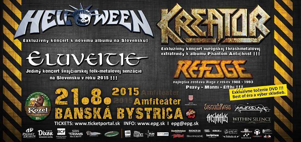 Veteráni melodického metalu Helloween, speed-powermetaloví Rage pod názvom Refuge a z Nemecka prichádzajúci trashmetalový Kreator. To je zostava, ktorá v auguste opäť rozohní nejedného fanúšika v banskobystrickom amfiteátri s predskokanmi Anstratus, Within Silence, Signum Regis a Ravenclaw!