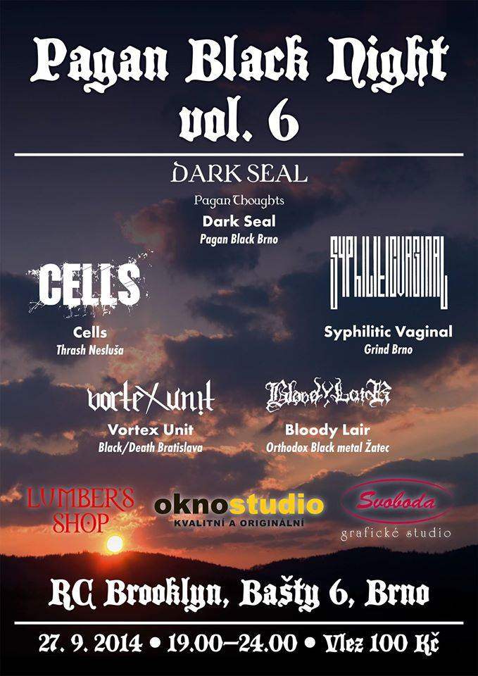 Na letošní září jsme pro fandy tvrdé muziky přiravili mix zajímavých kapel z různých žánrových končin. Naši domovskou kapelu DARK SEAL nemusíme dlouze představovat a naši fandové se můžou těšit na nové songy, které se objeví na připravovaném CD Pagan Thoughts vol. 2. Staronová kapela TORC již několik akcí odehrála a že kluci rozehřát dav umí, předvedla tato banda na 100%. Dále sestavu doplní další místní parta Syphilitic Vaginal, která roztopí pod kotlem kvalitním grindem. Ze Slovenska nás přijedou rozehřát Cells se svým trash metalem a staronový Vortex Unit nás dorazí svým technickým mixem black-deathu.